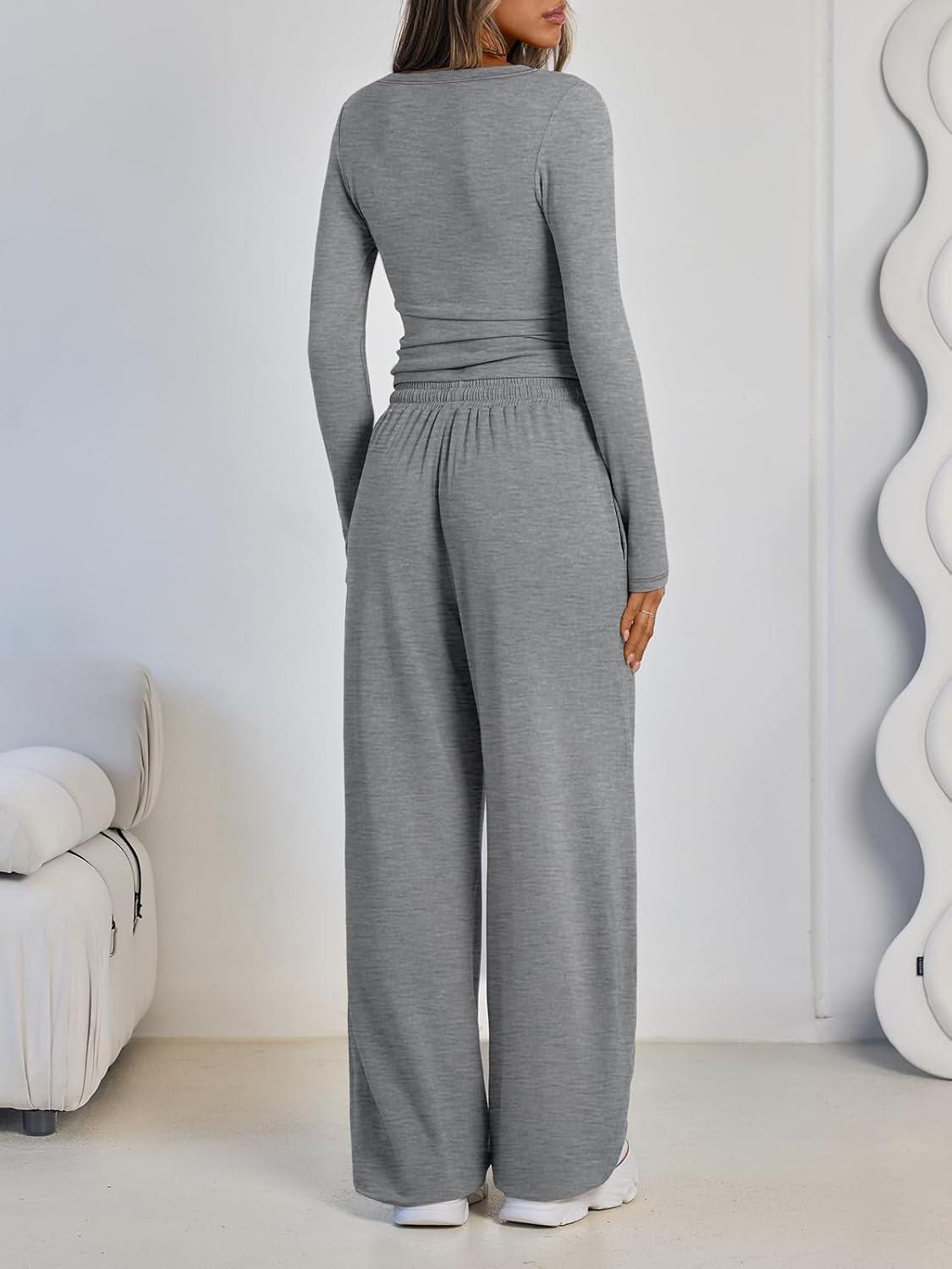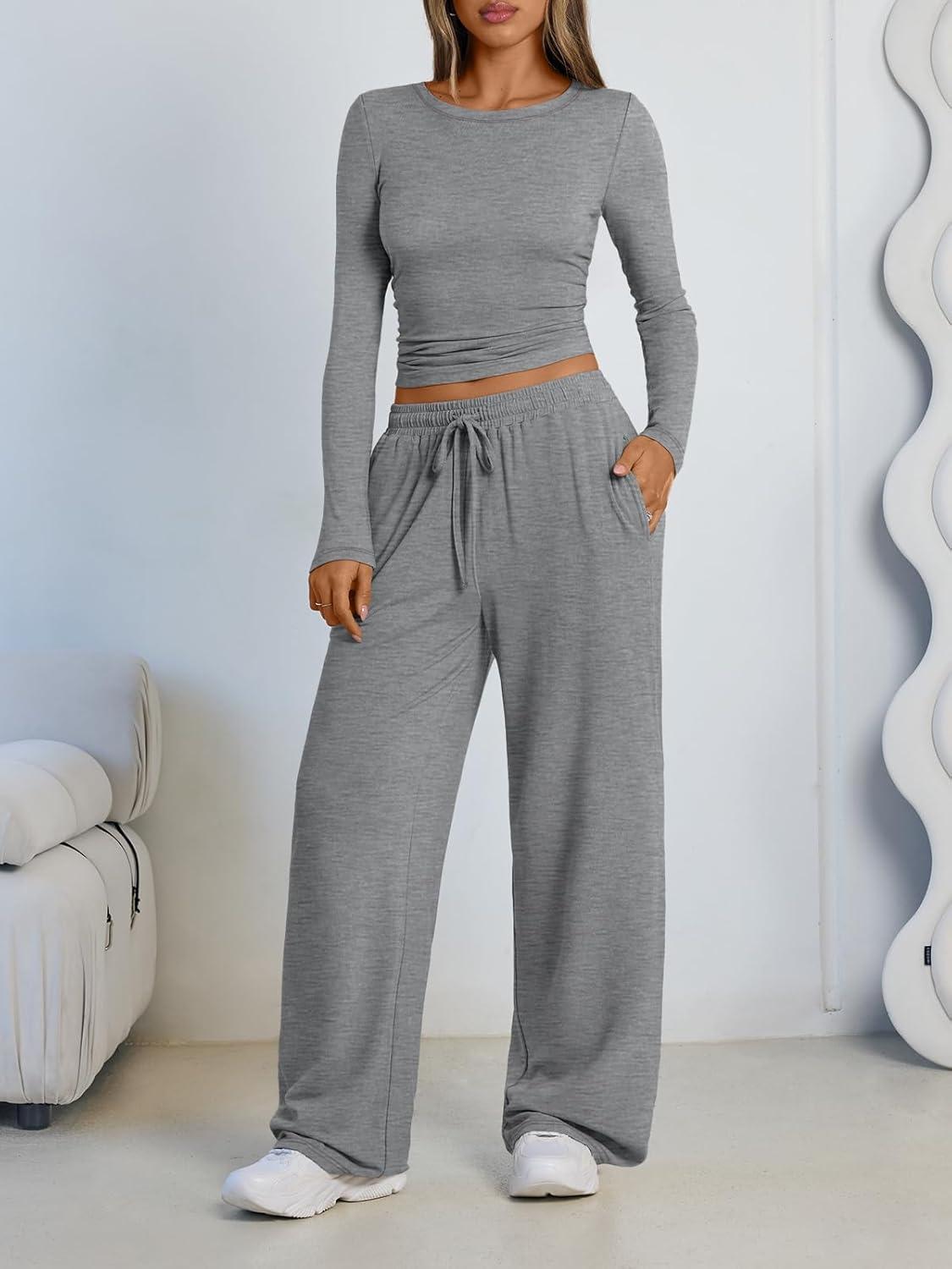 LILLUSORY 2 Piece Lounge Sets for Women Fall Outfits 2025 Two Piece Travel Sweatsuits Business Casual Fashion Clothes(Dark Heather Grey)