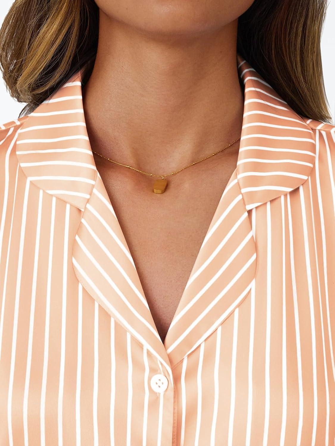Be the first to review “LILLUSORY Graphic Satin Pajamas for Women Set 2 Piece Ruffle Pjs Matching Lounge Party Button Down Sleepwear Silk Nightwear(Stripedchampagne)”