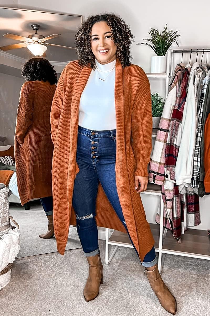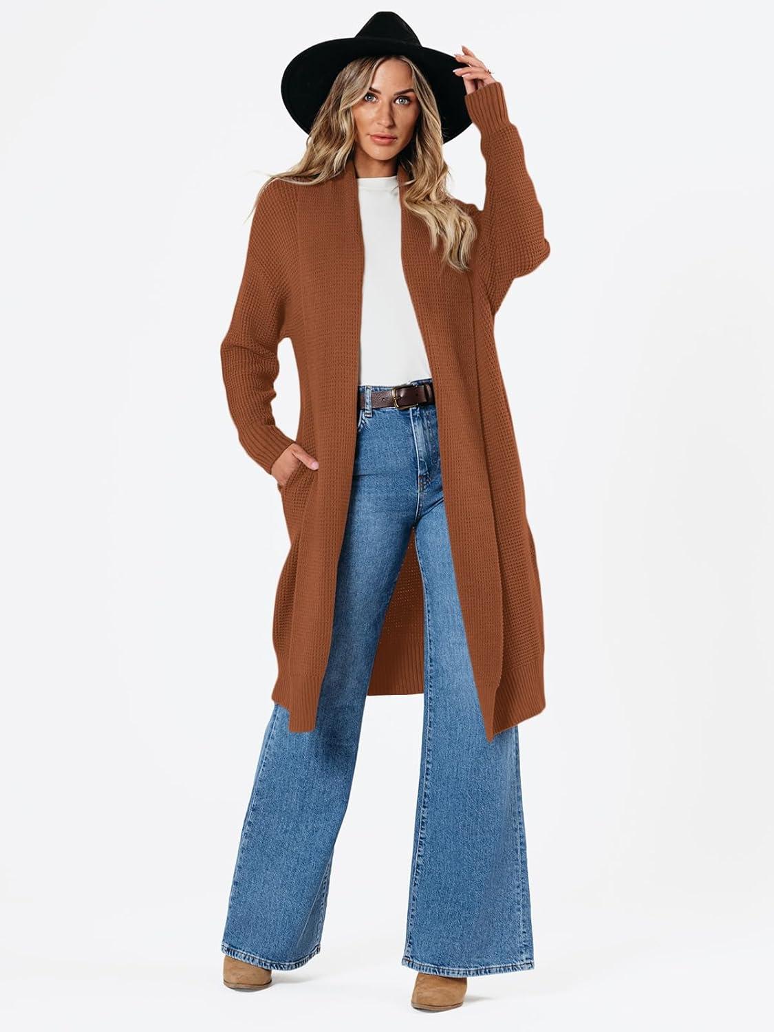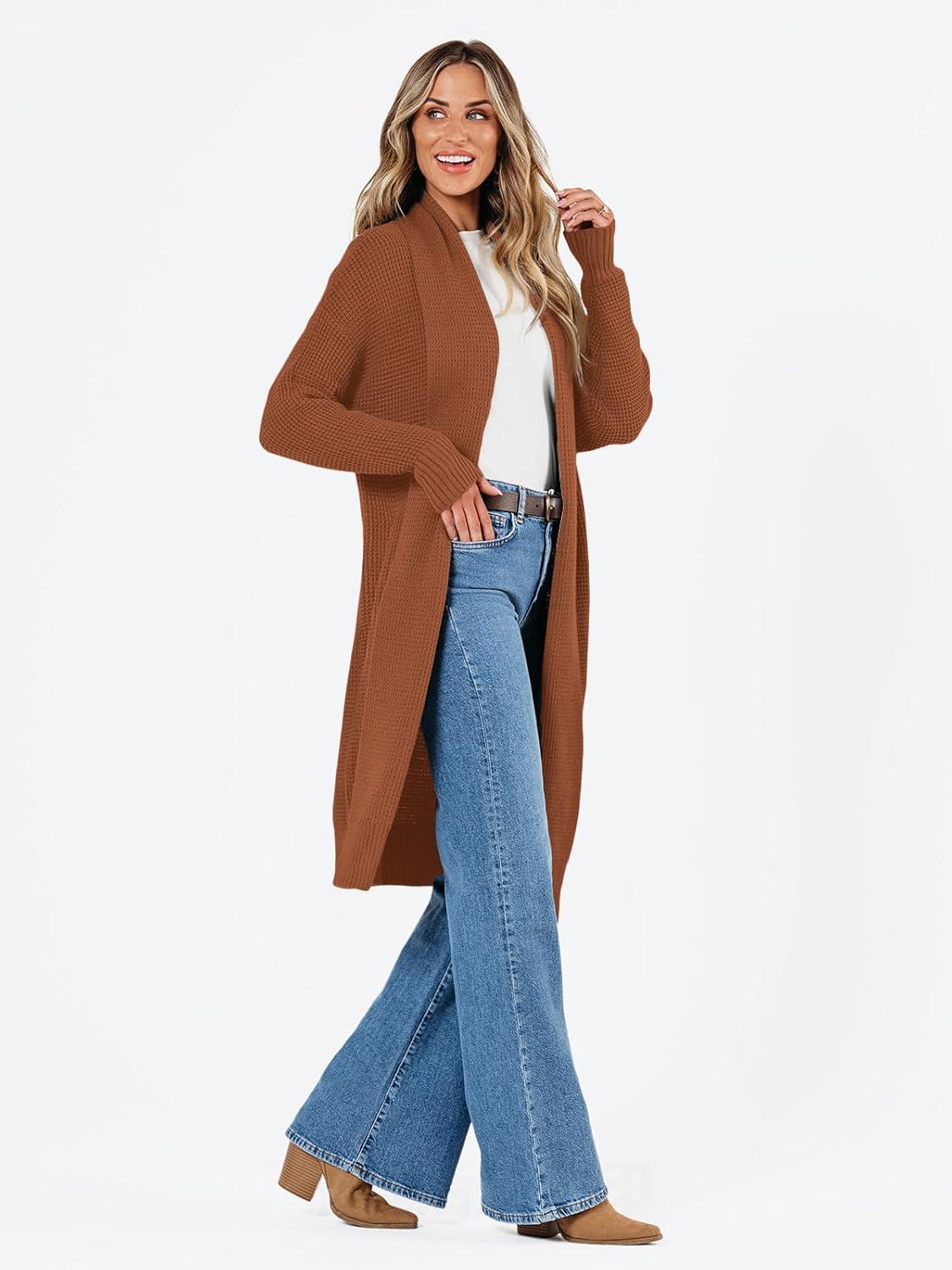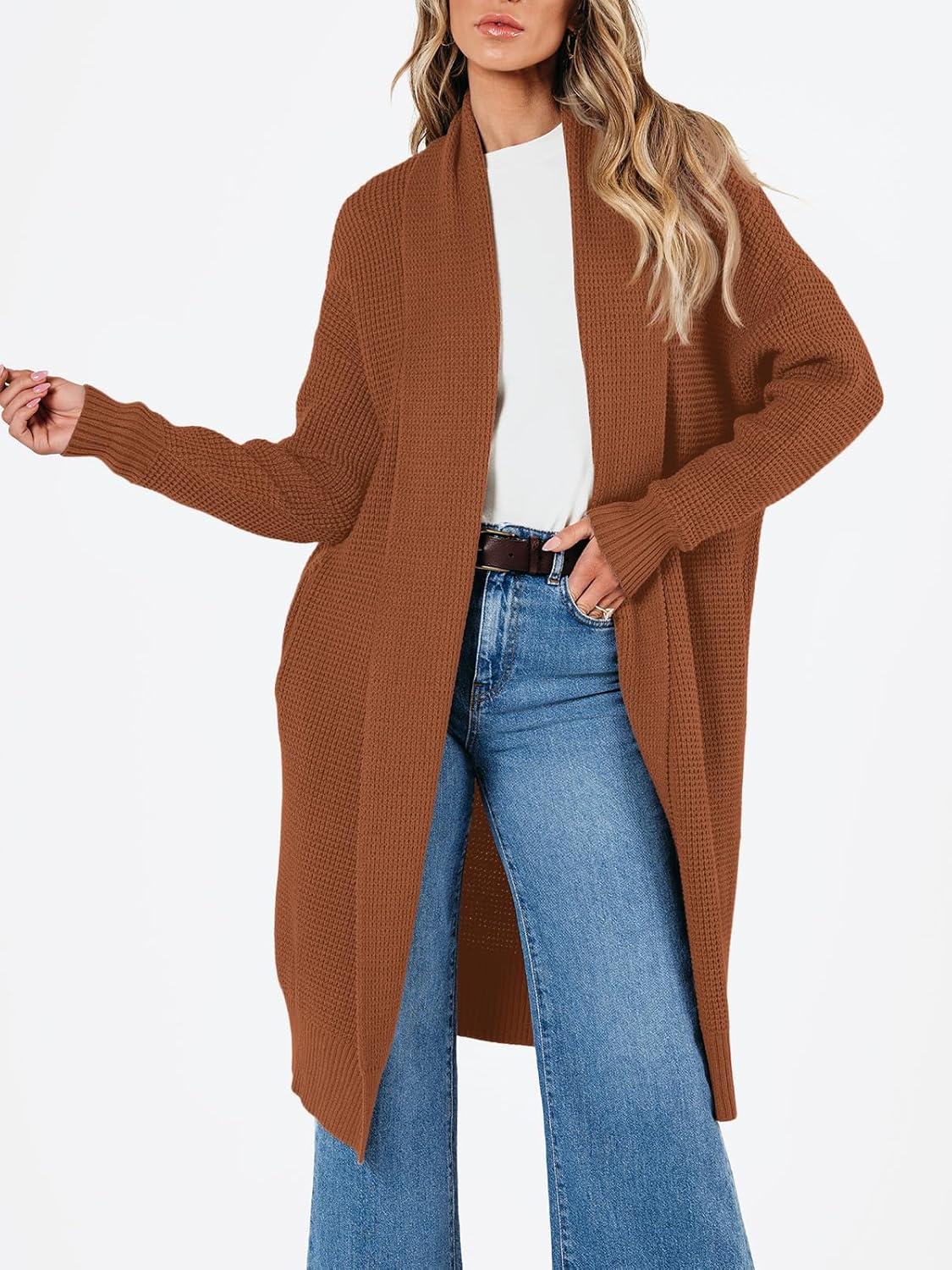 LILLUSORY Long Cardigan Sweaters for Women Fall Trendy Oversized Open Front Winter Coat(Brown)