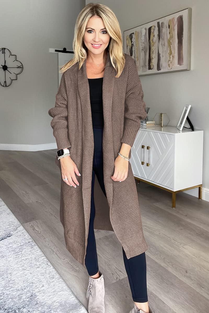 LILLUSORY Long Cardigan Sweaters for Women Fall Trendy Oversized Open Front Winter Coat(Khaki)