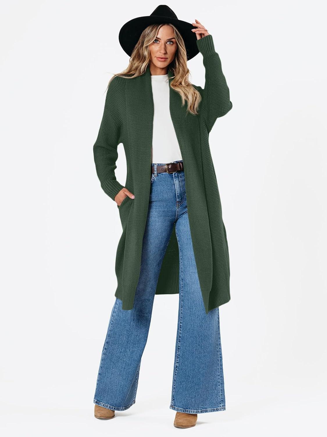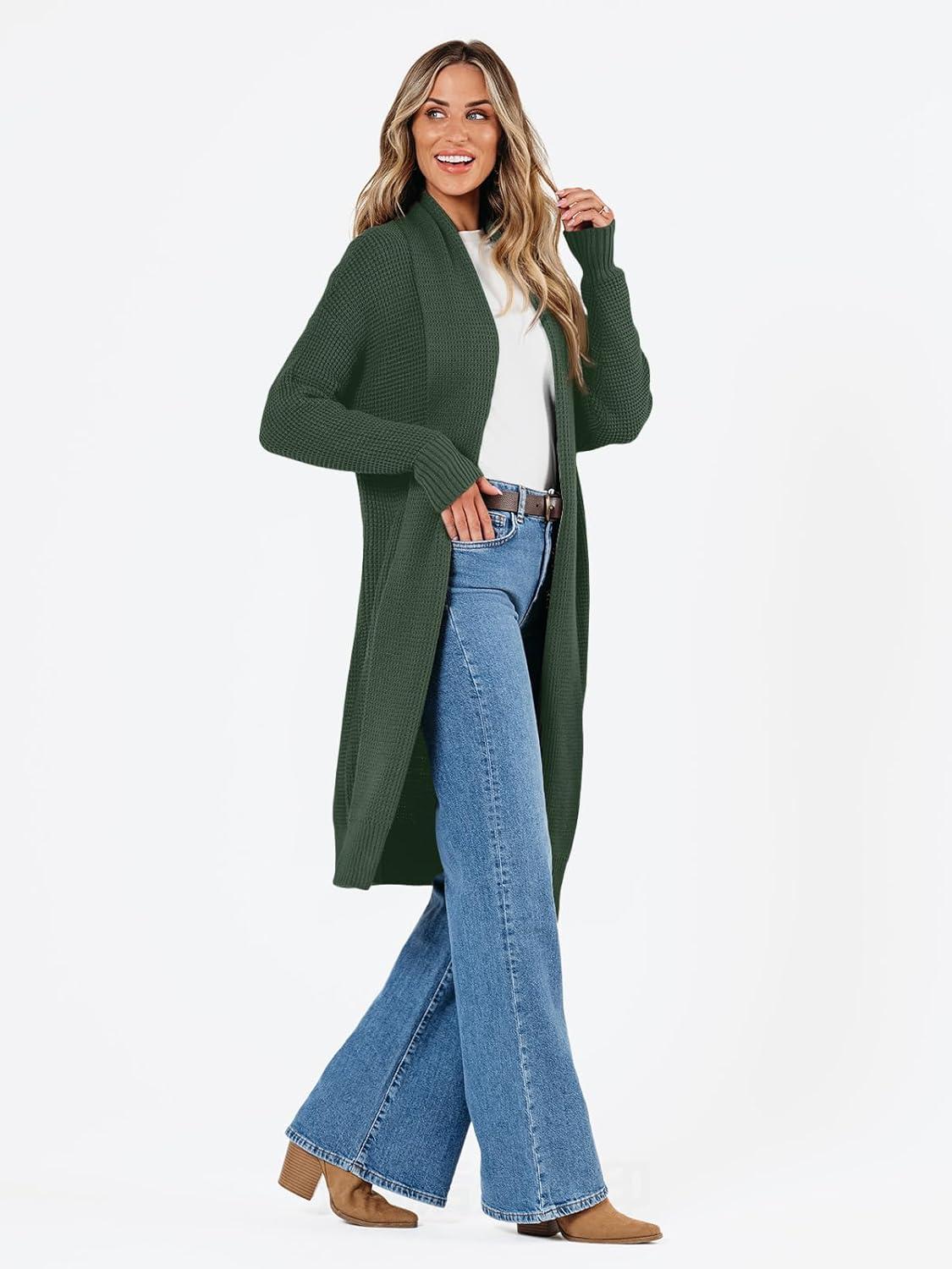 LILLUSORY Long Cardigan Sweaters for Women Fall Trendy Oversized Open Front Winter Coat(Olive)