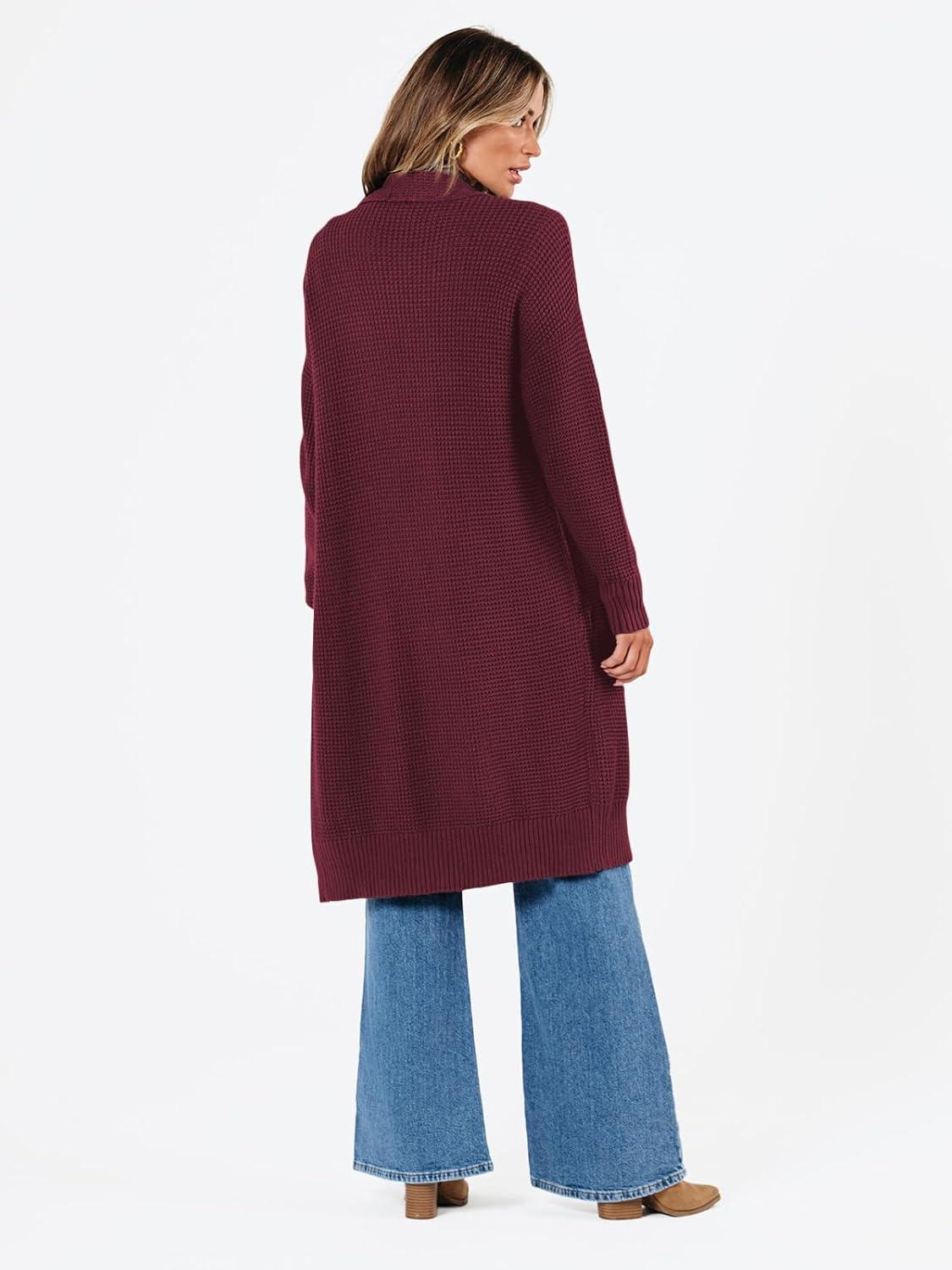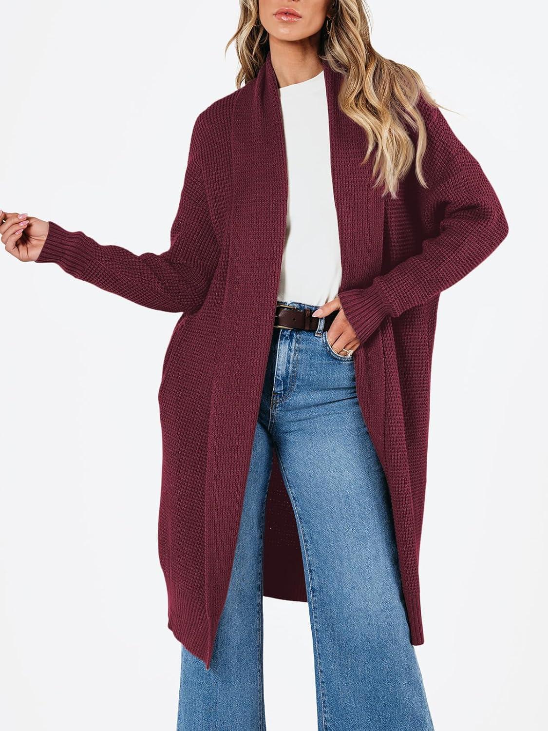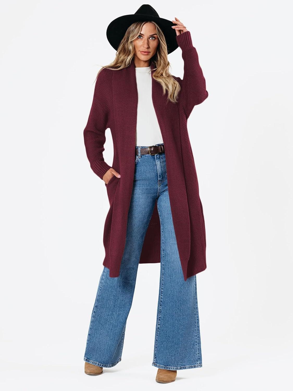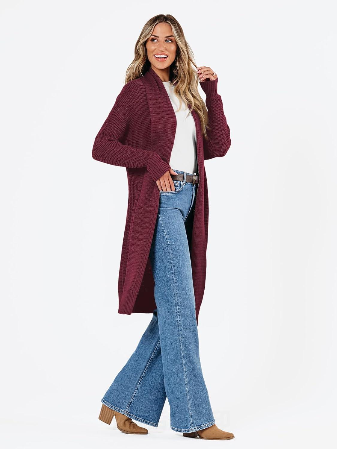 LILLUSORY Long Cardigan Sweaters for Women Fall Trendy Oversized Open Front Winter Coat(Wine)