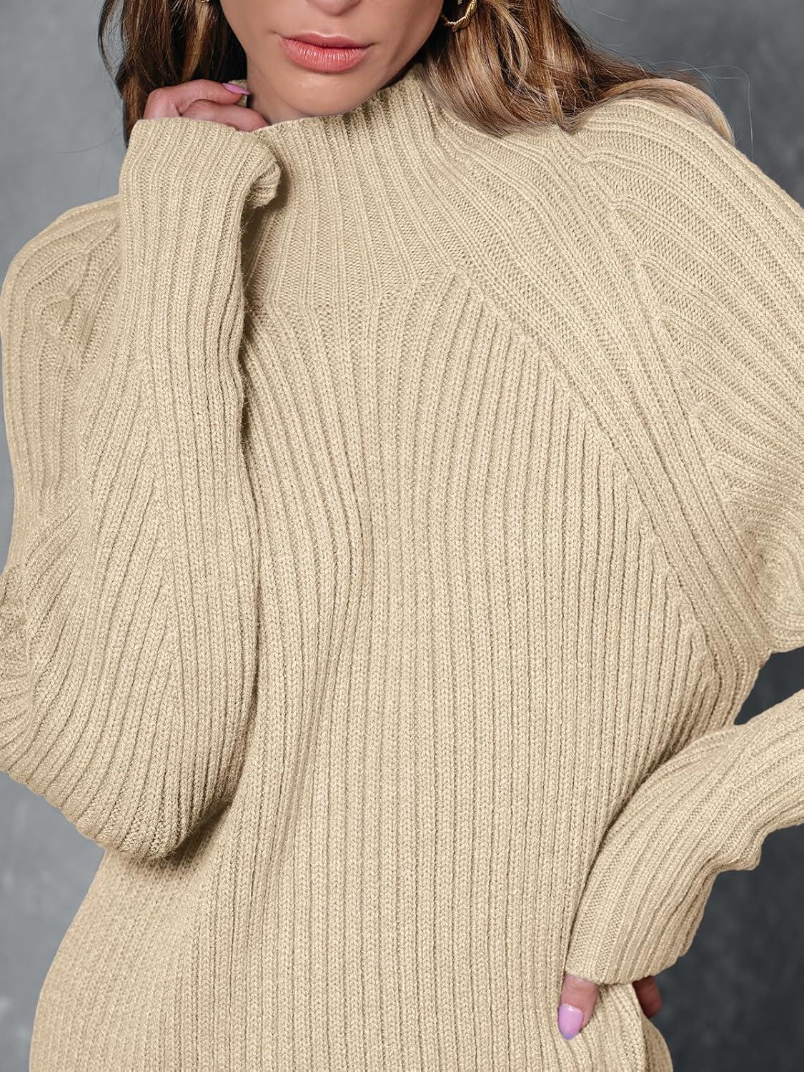 LILLUSORY Sweater Dresses for Women 2025 Fall Fashion Mock Neck Long Lantern Sleeve Oversized Outfits Knit Tops Clothes(Apricot)