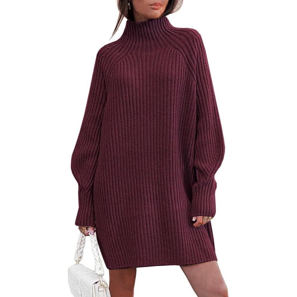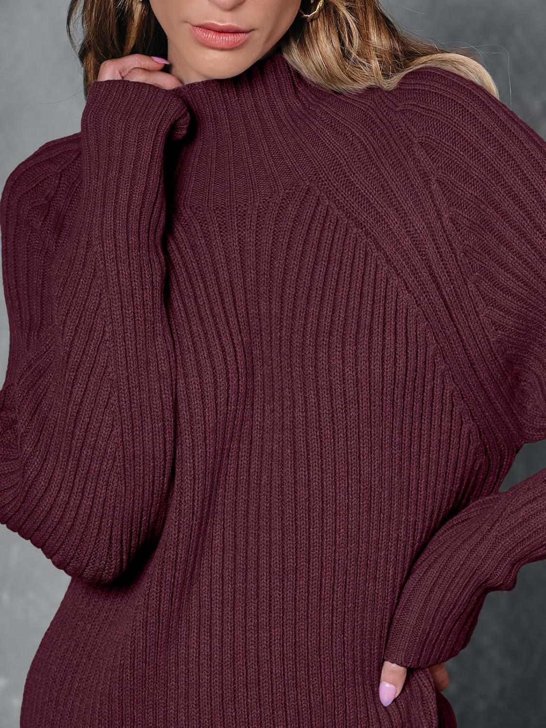 LILLUSORY Sweater Dresses for Women 2025 Fall Fashion Mock Neck Long Lantern Sleeve Oversized Outfits Knit Tops Clothes(Wine Red)