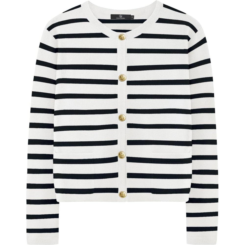 LILLUSORY Women Cardigan Sweaters Fall Outfit Clothes Fashion Cropped Jackets Trendy 2025 Casual Long Sleeve Tops(A White Black)