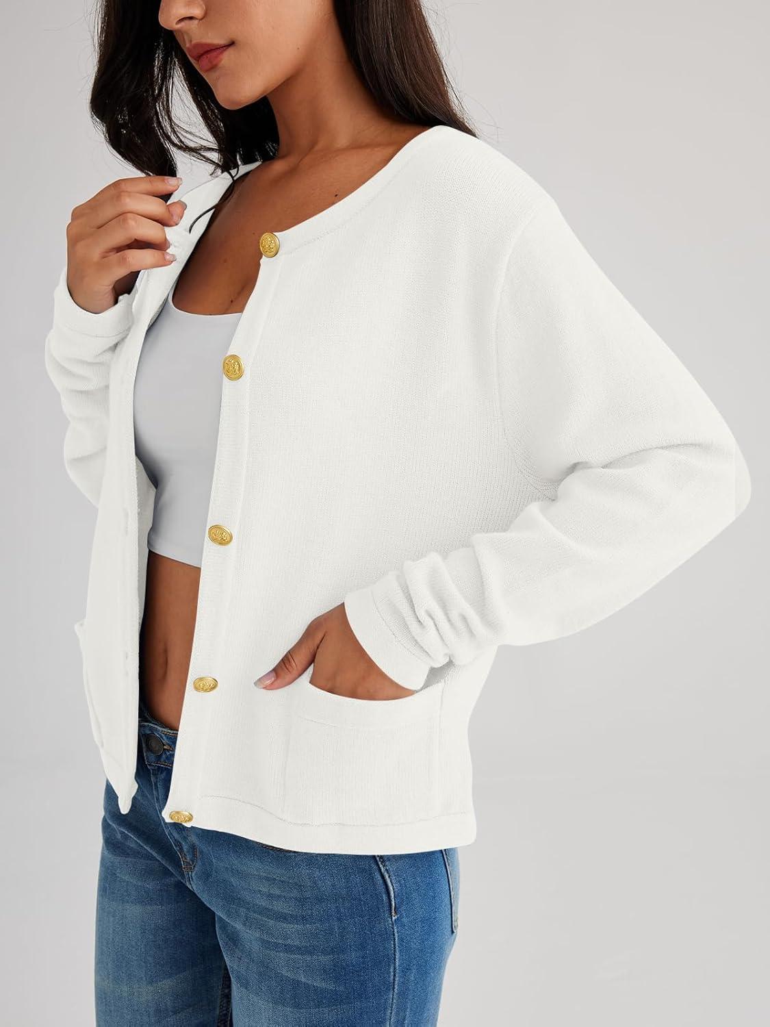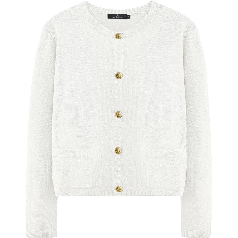 LILLUSORY Women Cardigan Sweaters Fall Outfit Clothes Fashion Cropped Jackets Trendy 2025 Casual Long Sleeve Tops(A White)