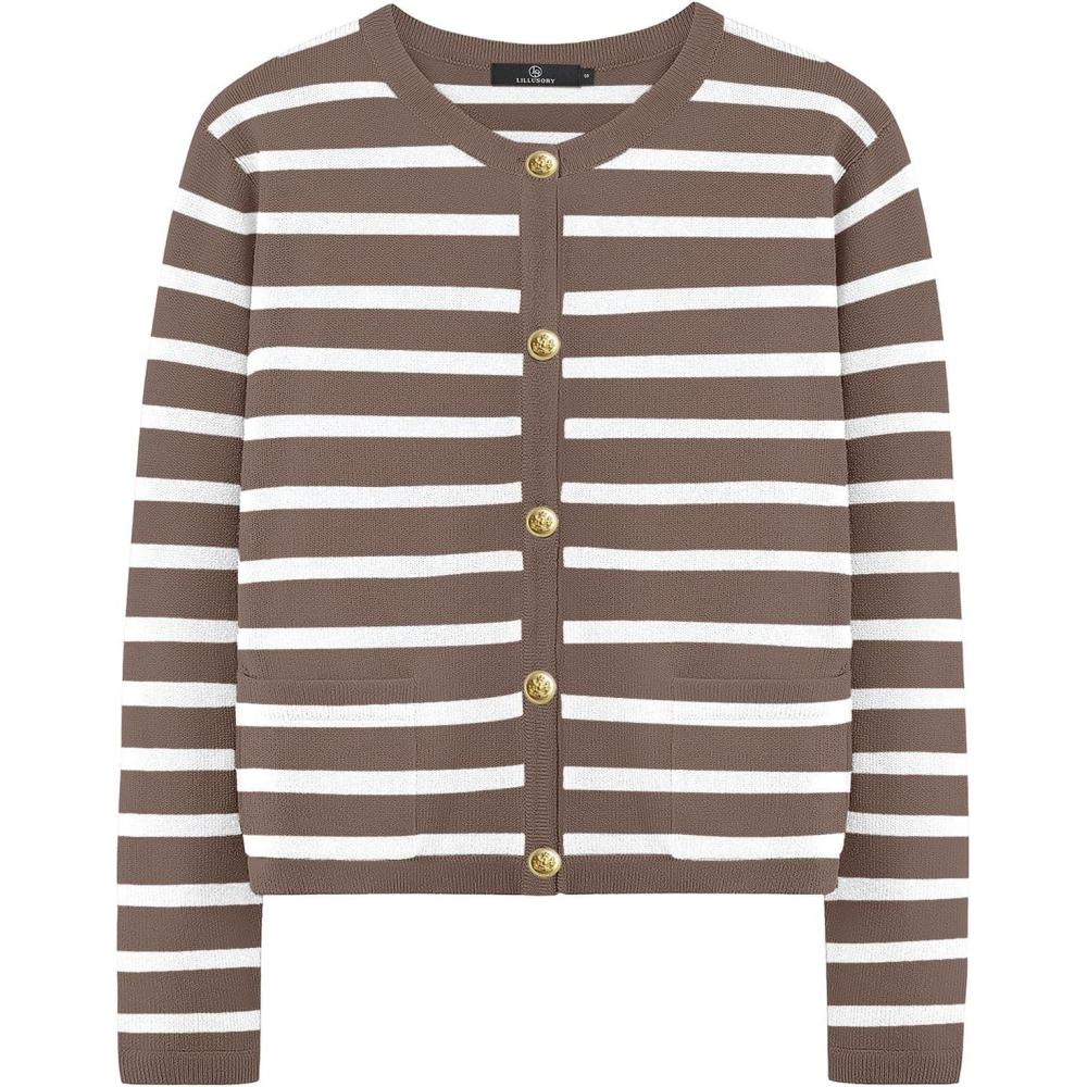 LILLUSORY Women Cardigan Sweaters Fall Outfit Clothes Fashion Cropped Jackets Trendy 2025 Casual Long Sleeve Tops(Nutmeg White)