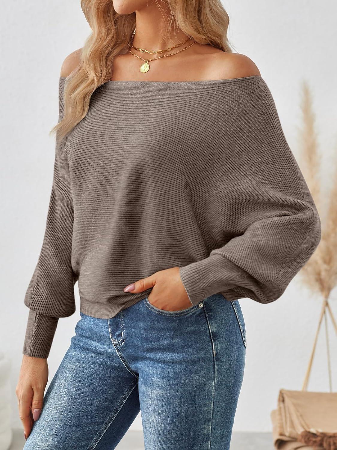 Save up to 40% on LILLUSORY Women One Shoulder Sweater Fall Fashion Long Batwing Sleeve Knit Pullover Cute Tops Trendy Outfits(Camel) styles during our end-of-season sale.
