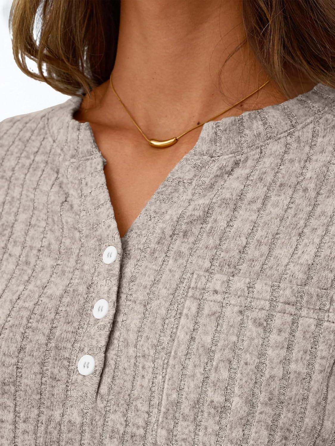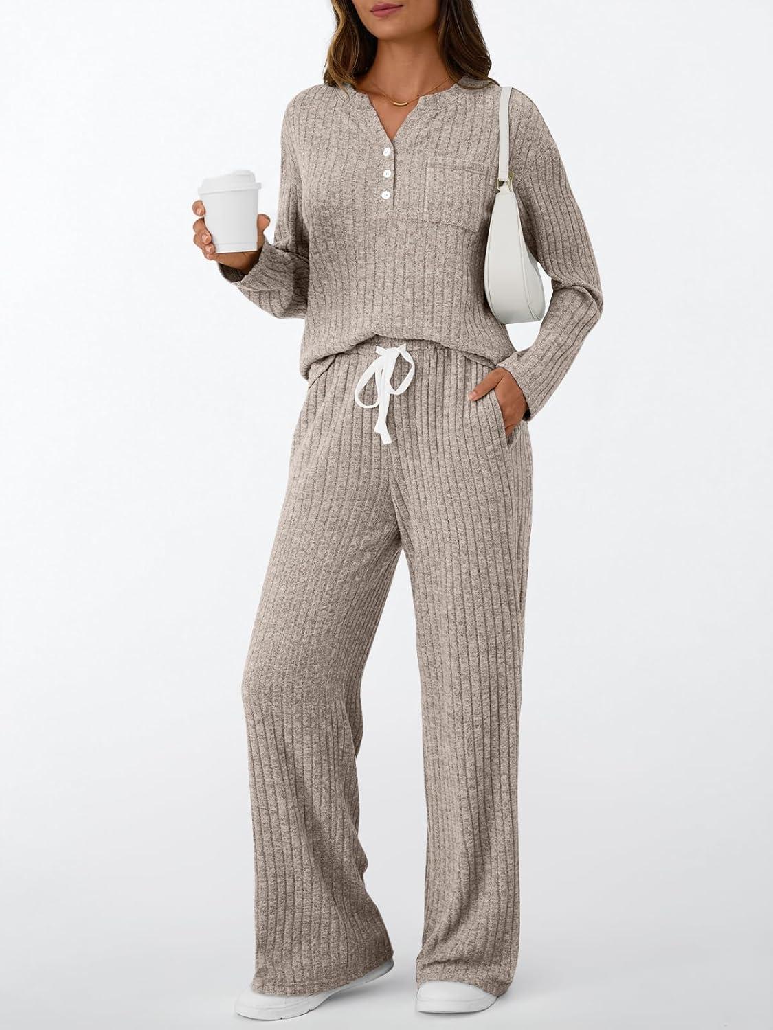 LILLUSORY Womens 2 Piece Lounge Sets Fall Outfits Henley Neck Sweater 2025 Matching Sweat Suits Comfy Pajamas Clothes Pockets(Camel)