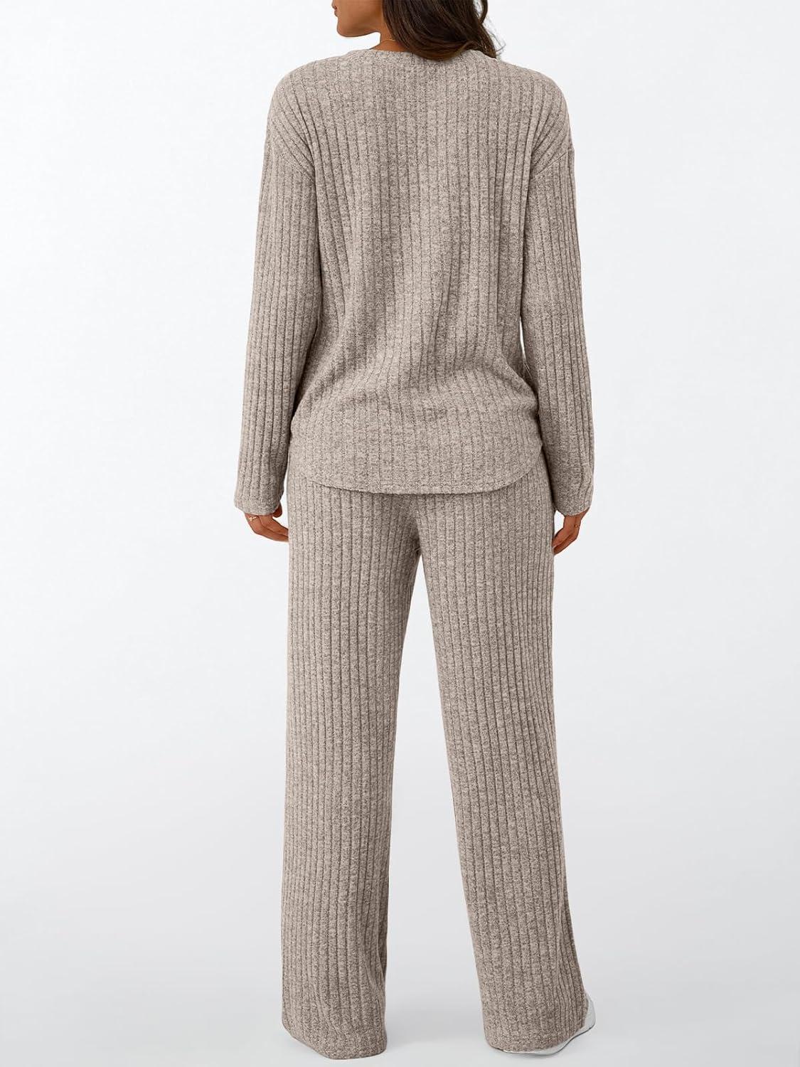 LILLUSORY Womens 2 Piece Lounge Sets Fall Outfits Henley Neck Sweater 2025 Matching Sweat Suits Comfy Pajamas Clothes Pockets(Chocolate Brown)