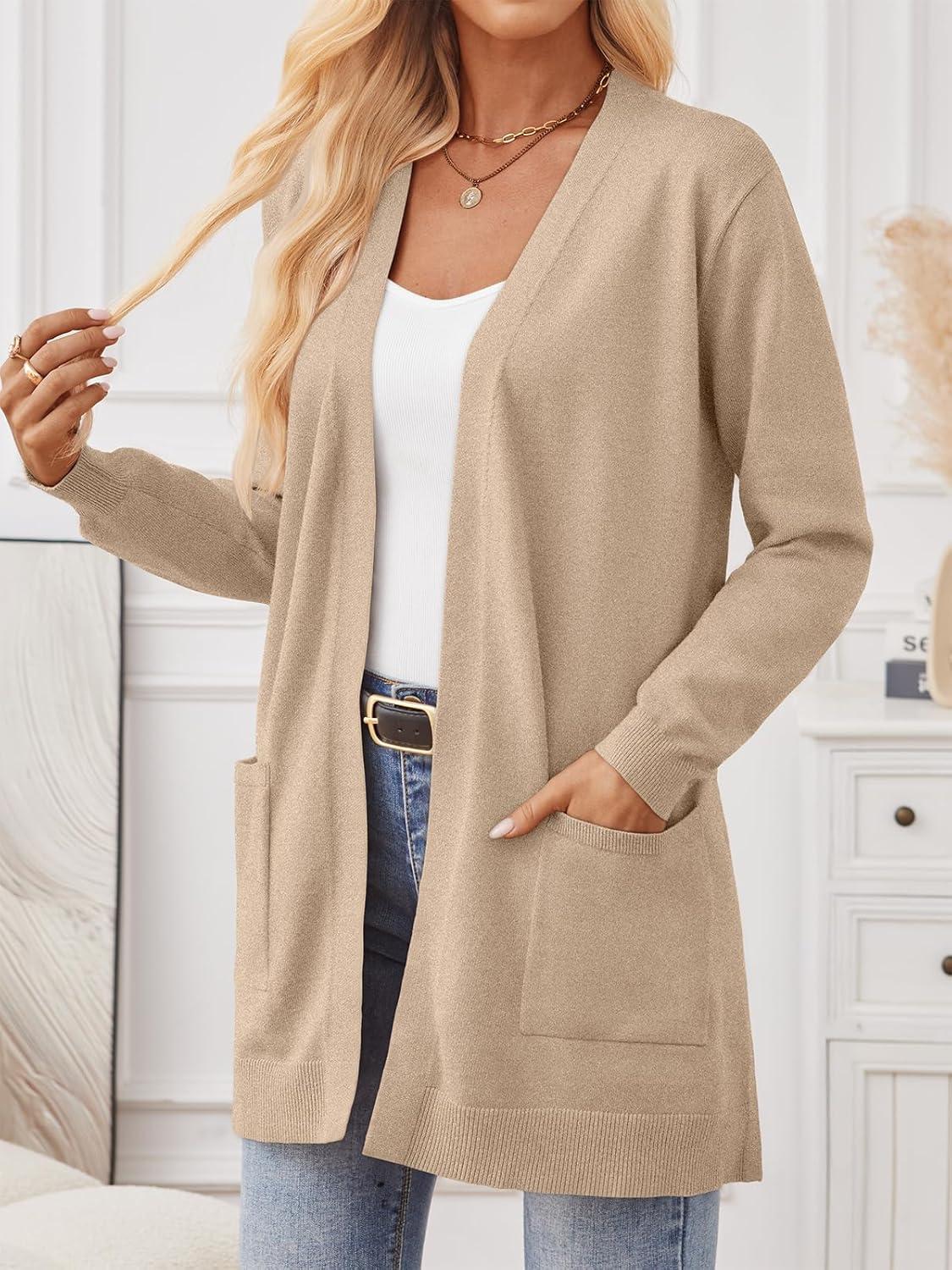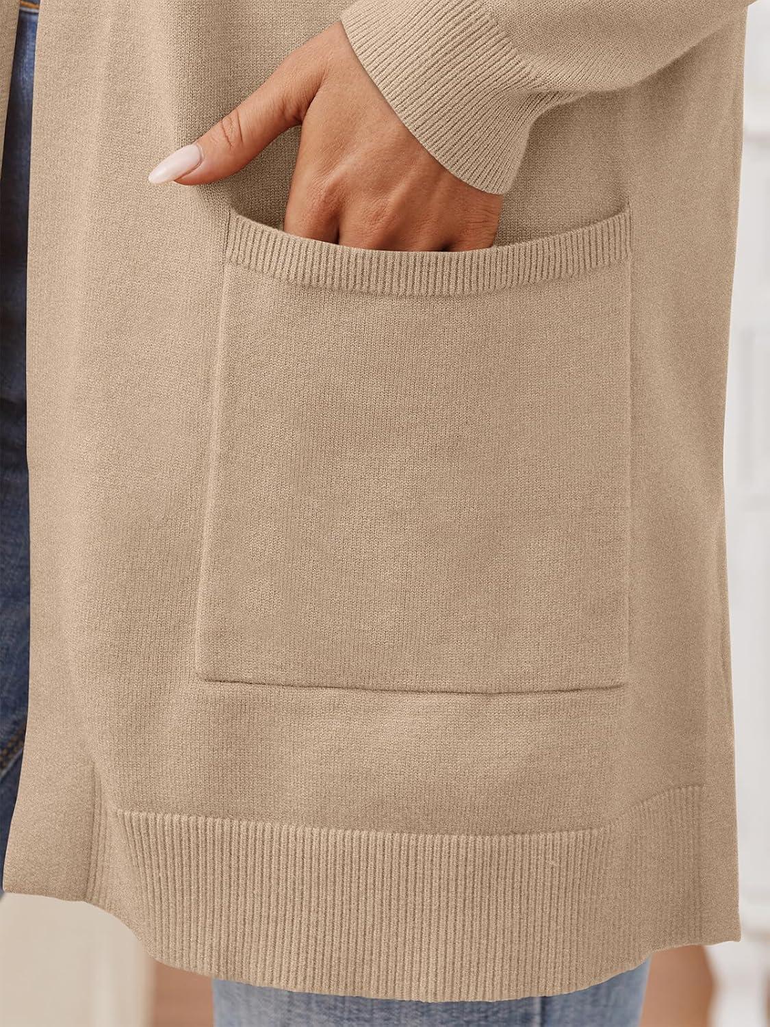LILLUSORY Womens Long Cardigan Sweaters with Pockets Open Front Knit 2025Fall Fashion Outfits Winter Clothes(Camel)