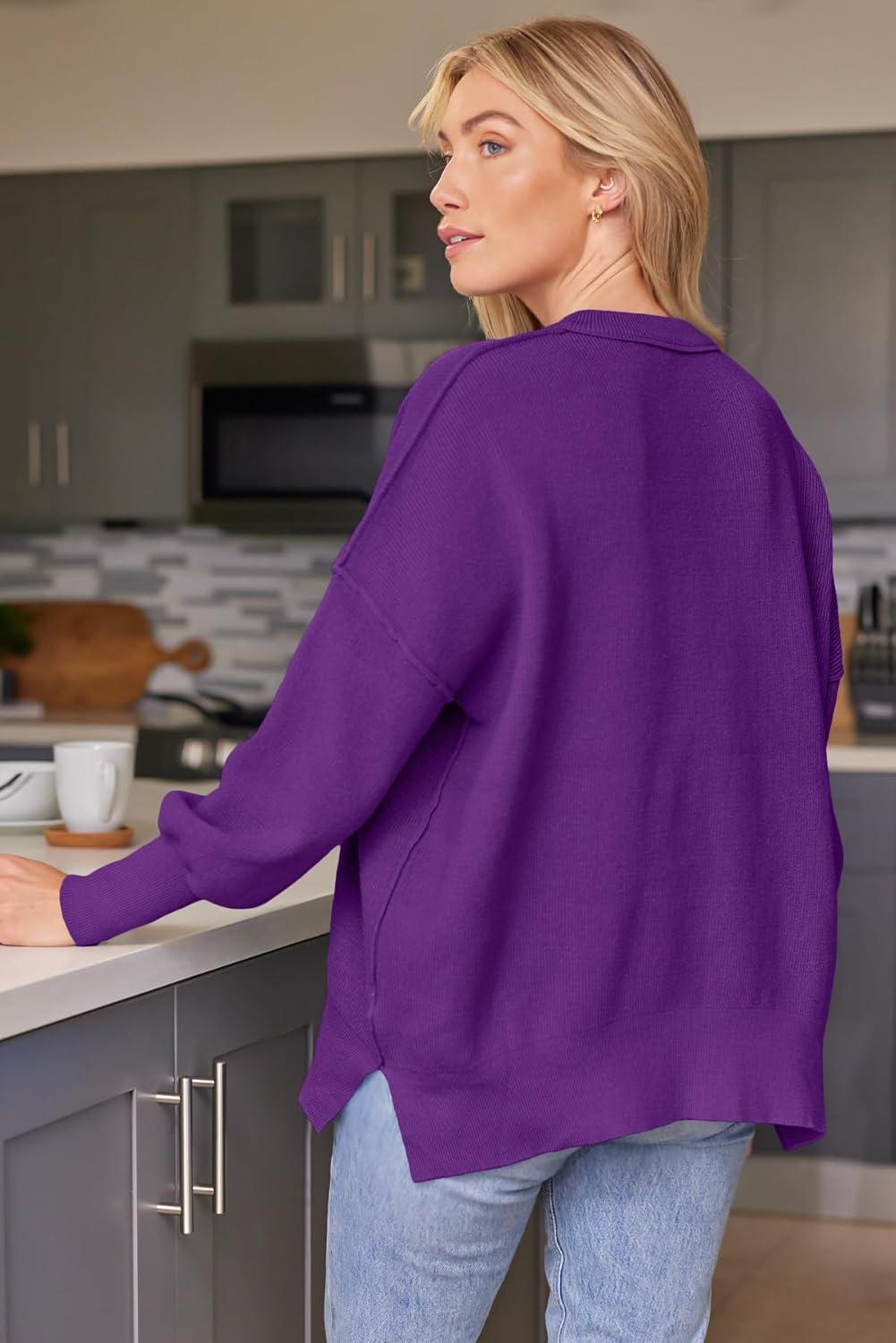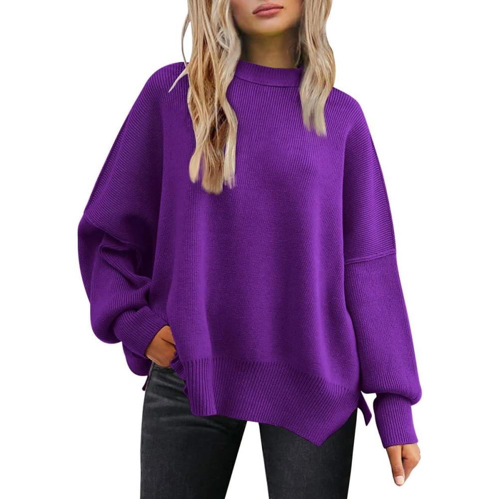 LILLUSORY Women’s Oversized Batwing Sweaters 2025 Fall Outfits Trendy Crewneck Knit Side Slit Fashion Pullover Tops(Purple)