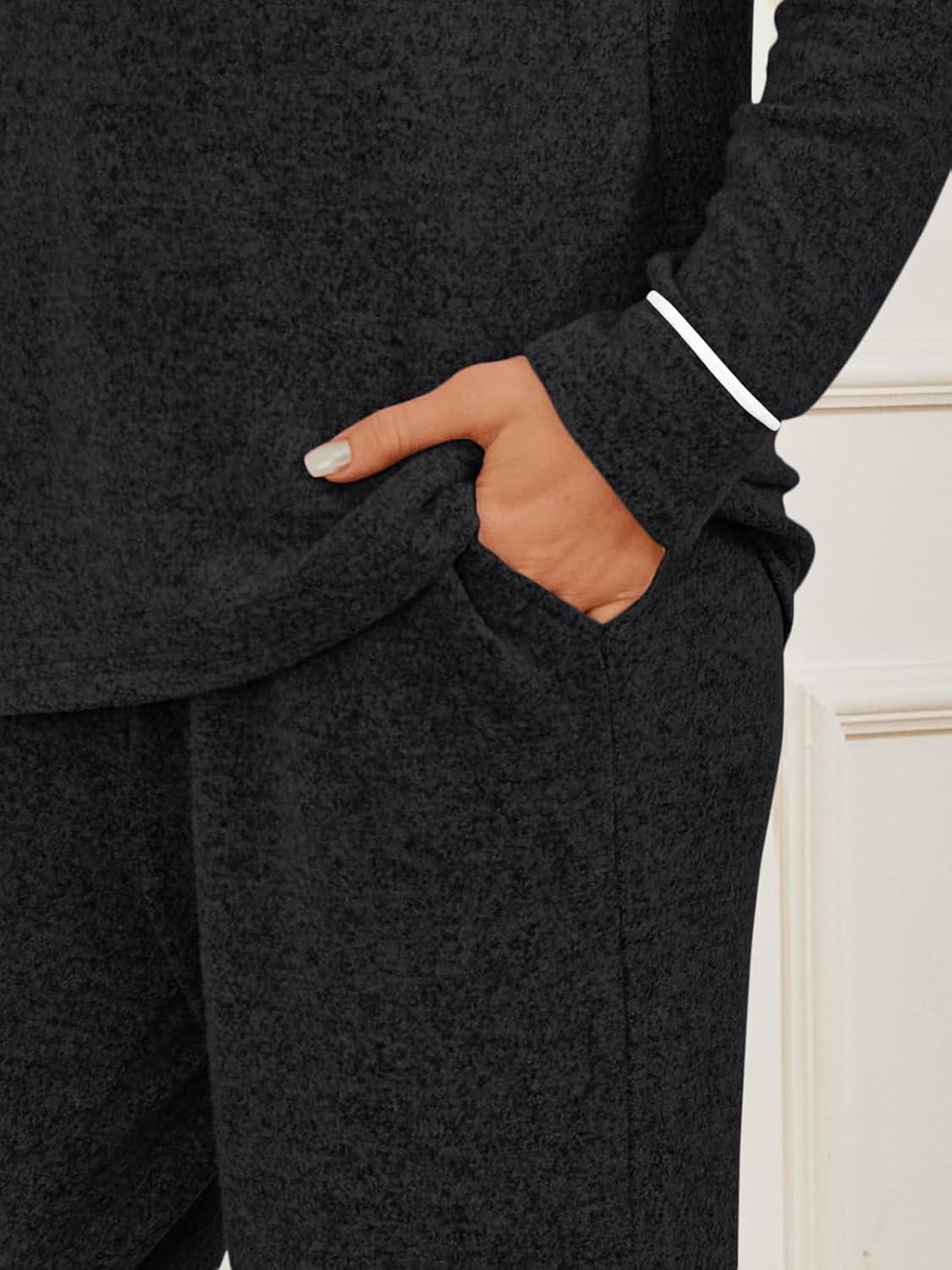 LILLUSORY Womens Pajamas Sets Long Sleeve Pjs Two Pieces Lounge Sleep Wear Matching Set With Pockets(Black)