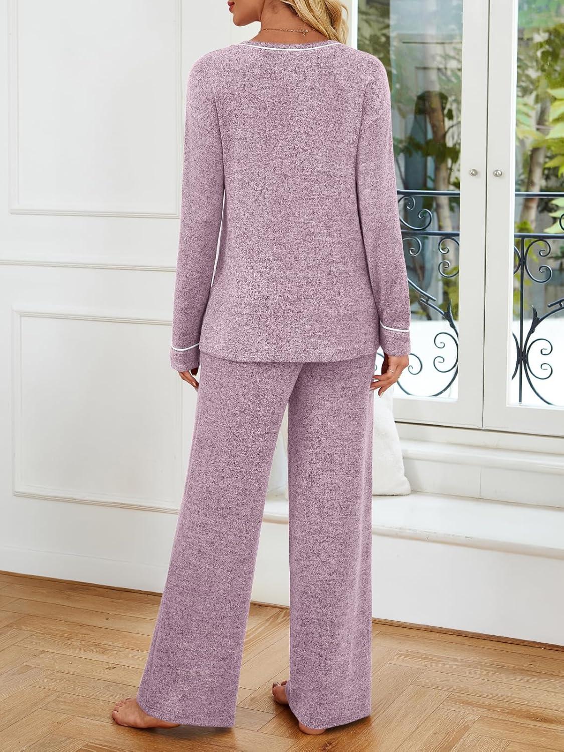 LILLUSORY Womens Pajamas Sets Long Sleeve Pjs Two Pieces Lounge Sleep Wear Matching Set With Pockets(Pink)