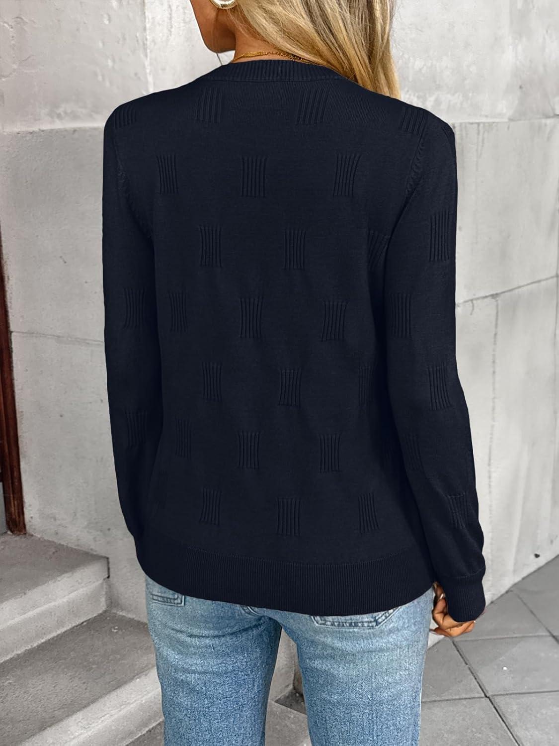 LILLUSORY Womens Sweaters Fall Fashion 2025 Lightweight Long Sleeve Knit Pullover Casual Trendy Tops Winter Clothes(Navy)