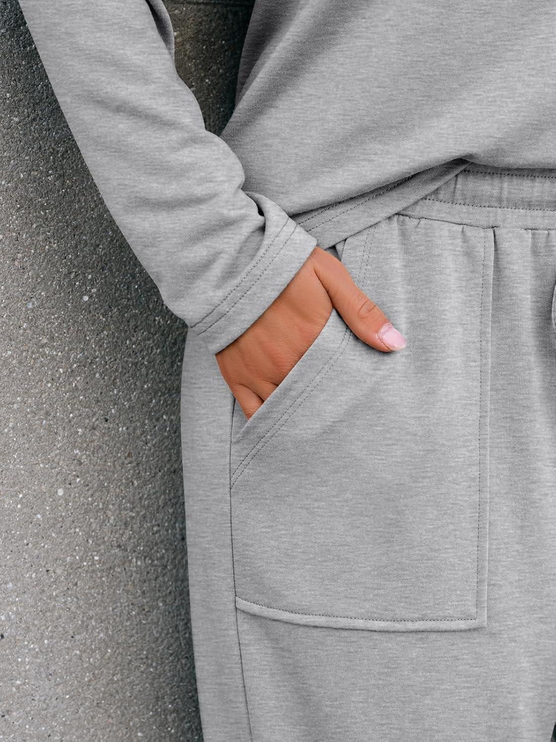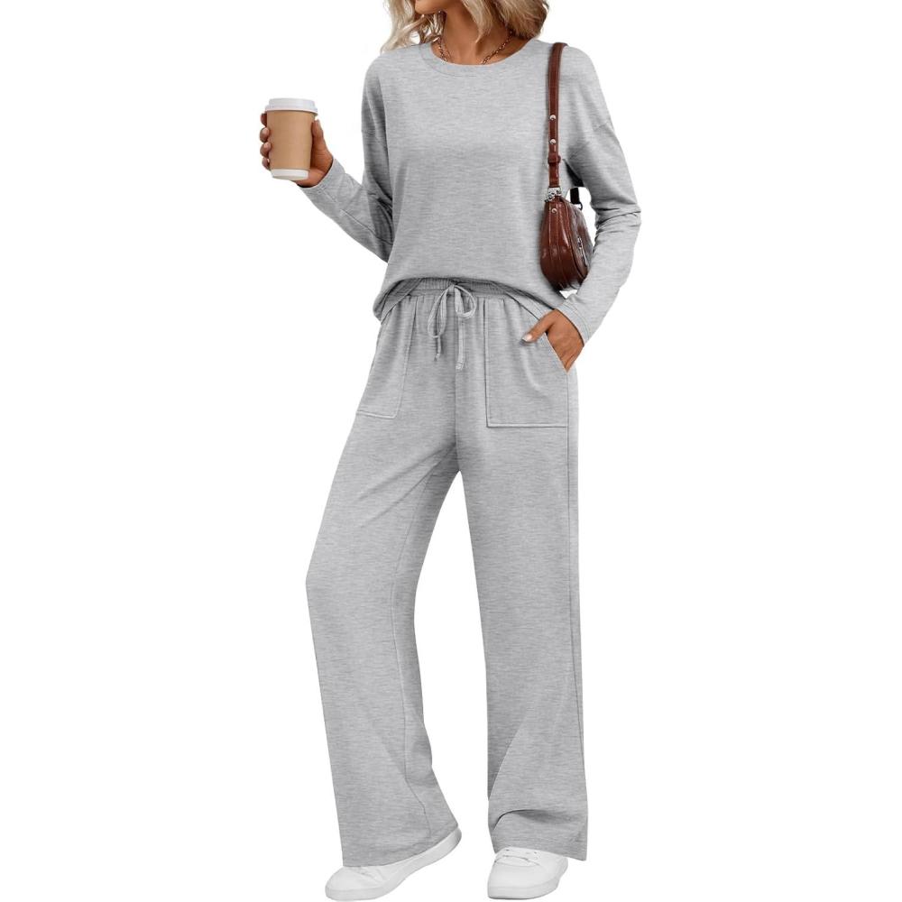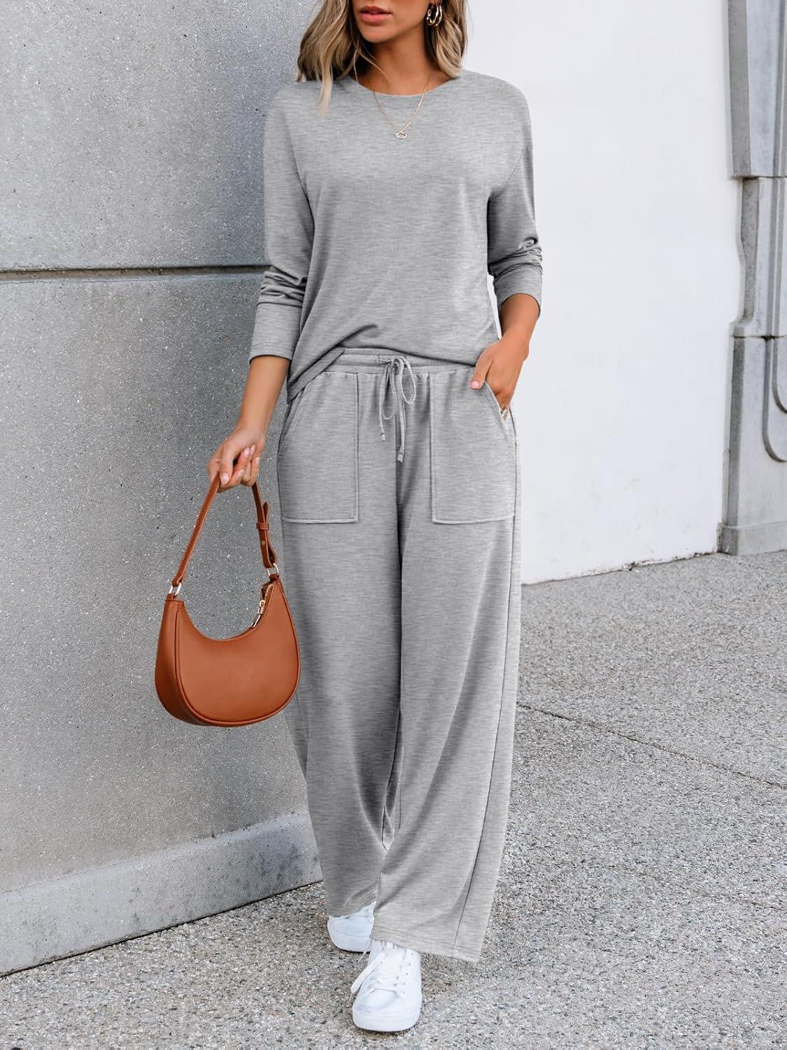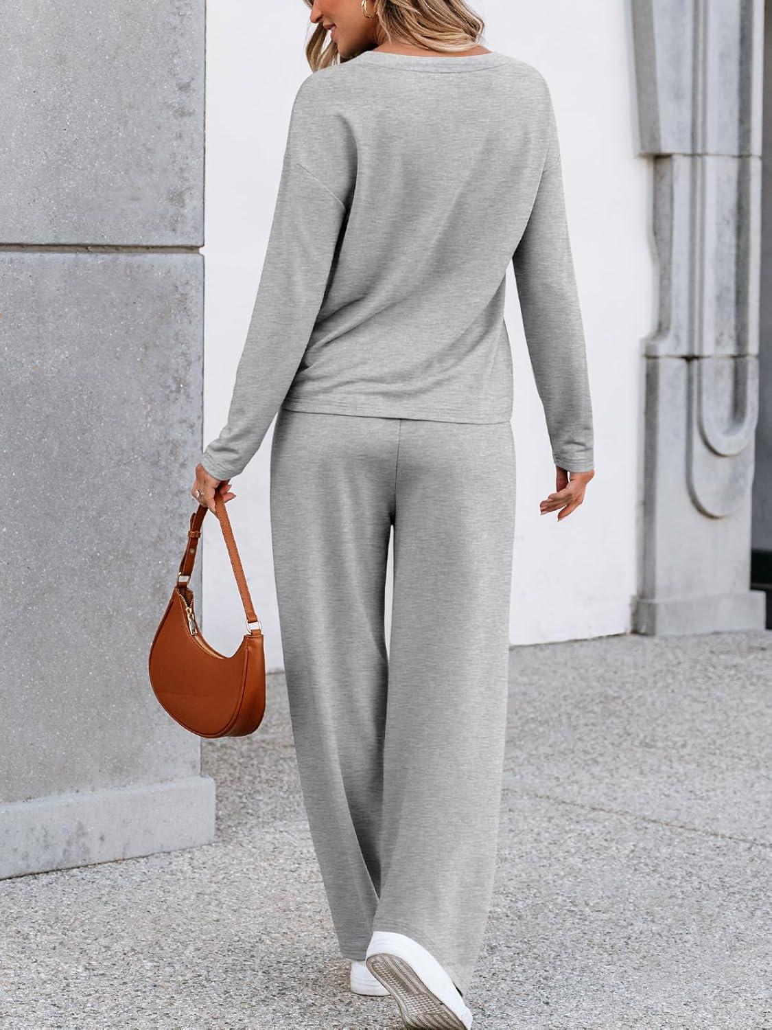 LILLUSORY Women’s Sweatsuits 2 Piece Outfits Lounge Matching Sweat Sets Casual Sweatshirts Wide Leg Sweatpants Tracksuit Sets(Grey)
