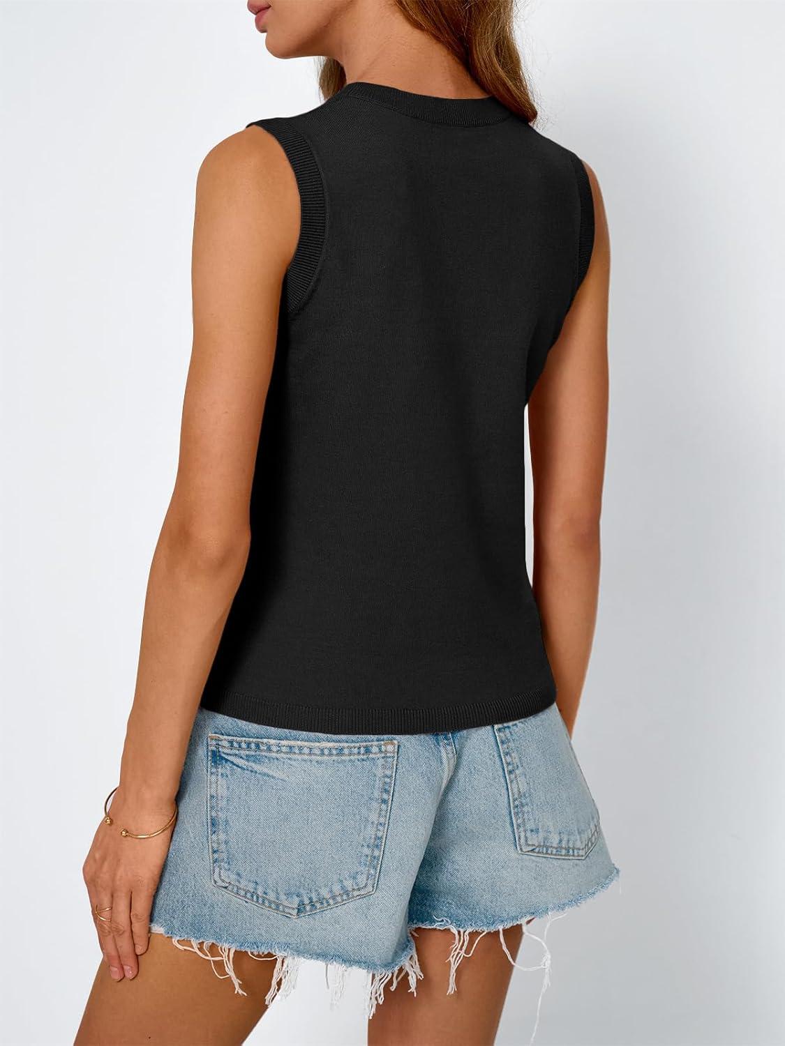 LILLUSORY Womens Tank Tops Sweater Vest Sleeveless Cute Shirts Dressy Casual Clothes Spring Summer Outfits Trendy 2025(Black)
