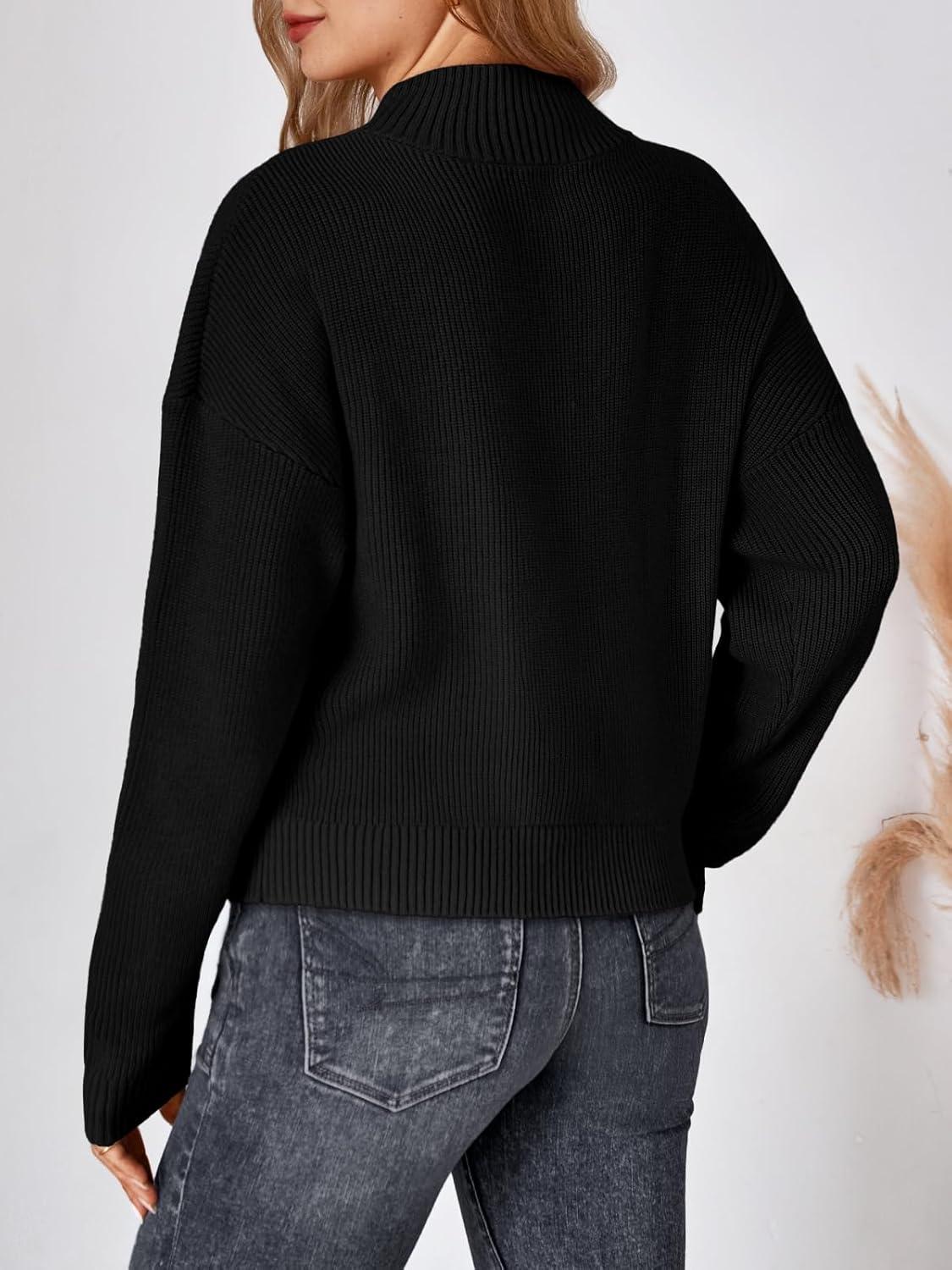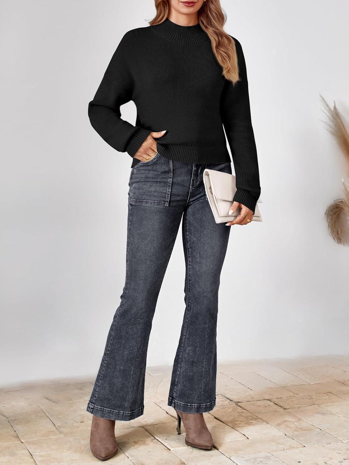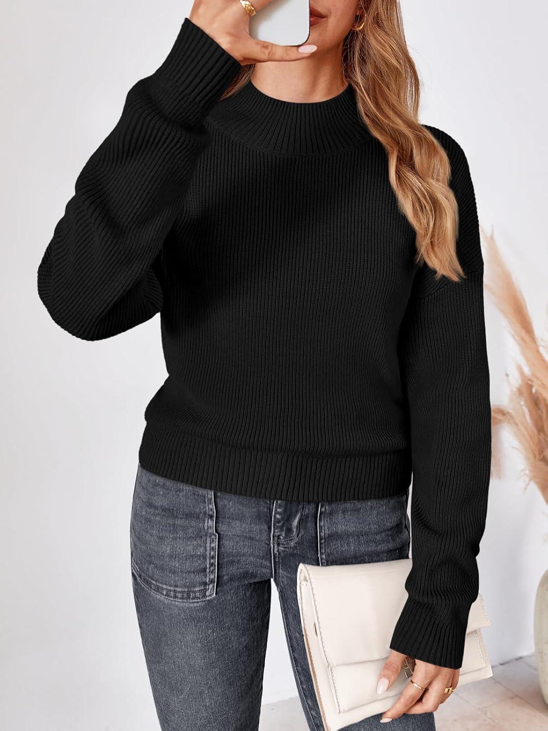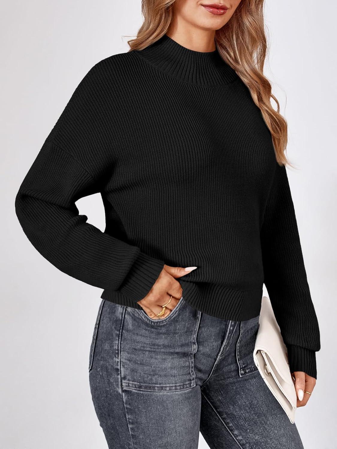 LILLUSORY Womens Turtleneck Mock Cropped Sweaters Winter Cute Oversized Knit Trendy Tops Fashion Long Sleeve Fall Clothes(Black)
