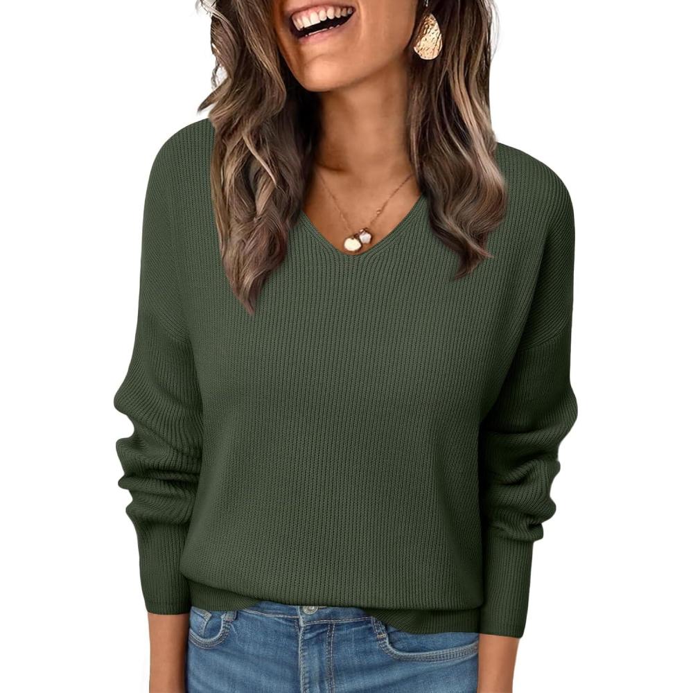 Save up to 40% on LILLUSORY Womens V Neck Sweater Long Sleeve Shirts Fall Fashion Clothes 2025 Knit Trendy Slim Fitted Tops(Army Green) styles during our end-of-season sale.